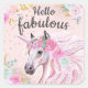 Unicorn Hello Fabulous Pink Floral Gold Glitter Quadratischer Aufkleber