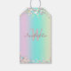 Einhorn Holographic Glitzer - Ein trendig funkelndes Geschenkschild mit türkisfarbenem, rosa, violett und hellgelbem Glitzer. Sie können diesen Geschenktag personalisieren, indem Sie Ihren Namen und Ihre Initialen hinzufügen.