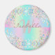 Unicorn Holographic Glitzer Magnet - Ein trendiger, funkelnder Magnet mit türkisfarbenem, rosa, violett und hellgelbem Glitzer. Sie können diesen Magneten personalisieren, indem Sie Ihren Namen und Ihre Initialen hinzufügen.