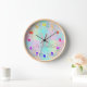 Einhorn Holographic Glitzer Wanduhr - Eine trendige, glitzernde Wanduhr mit türkisfarbenem, rosa, lila und hellgelbem Glitzer. Sie können diese Wanduhr personalisieren, indem Sie Ihren Namen und Ihre Initialen hinzufügen.