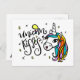 ©2017, Dio Perez ~ Manuelles und illustriertes Design mit einem farbenfrohen Einhorn mit gebratenen Lippen. Handschrift lautet: "Unicorn Kisses". Mit dieser lustigen und farbenfrohen Postkarte fügt man jemandem ein wenig Magie hinzu. Schicken Sie diese Postkarte an einen unikornliebenden Freund, rahmen Sie sie ein, um sie in Ihrer Zuhause oder im Officebar anzuzeigen, verwenden Sie sie in Ihren Gedächtnisbüchern und Scrapbooks, fügen Sie sie über einen Papiergeschenkbeutel oder über eine gefaltete Karte, um eine überlagerte handgefertigte Grußkarte zu erstellen. Die Möglichkeiten sind grenzenlos!
