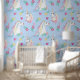 Transform your child's room into a kingdom of imagination and joy! This wallpaper features a unique design combining dreamy watercolor unicorns, pink flowers, and vibrant hearts, all against a serene celestial background.