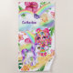 Eine schöne und niedliche Illustration eines weißen, magischen Einhornpony mit einem lila und rosa Horn und langen, glänzenden lila und lila Haaren und einem niedlichen Mädchen mit regenbogenfarbenen Haaren und passendem Outfit, das in der einen Hand ein Eis und in der anderen ein bezauberndes Einhornsack zusammenklettert. Sie sind auf magischen Staub stehend und sind gerahmt von einer schönen tropischen Blume und Blatt Muster gefüllt mit Hibiskus und Frangipani Blume in Wassermelone rot, orange, gelb und grün. Personalisieren Sie den Namen und das Geschenk es an Ihre Tochter, Enkelin, Tochter, Nichte oder Schwester am Geburtstag oder als Baby-Dusche Geschenk für eine Mama zu sein.