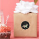 Pastellfarbene Silhouette mit Einhorn-Galopp, verlassend auf einer Spur von bunten Sternen. Personalisieren Sie Ihre Nachricht mit Ihrem Namen oder Ihrer Nachricht in einem rosa Script-Schriftart. Set auf schwarz.