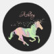 Unicorn mehrfarbige Sterne und Name Runder Aufkleber