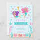 Diese niedliche und skurrile Geburtstagseinladung zeigt bezaubernde Meerjungfrauen mit einhornigen Hörnern in mittlerem Hautton. Im Hintergrund ist ein Seepferd, Krabben, Muscheln, Seestern, Korallen, Algen, Blasen und Sand. Der Text kombiniert dekorative und serf Schriftart für ein stilvolles und modernes Aussehen. Dies ist perfekt für eine Meerjungfrau oder eine Unterwasser-Geburtstagsparty.