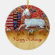 Farbenfrohe Weihnachtsschmuck mit elegantem Fleur de lys und heraldischen Motiven, blumenblaue Wirbel, Blume mit weißem Sitzen, Einhorn, digitaler Dekoration aus einer alten mittelalterlichen Miniatur .