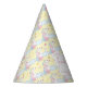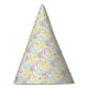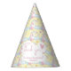 Das Design weist einen hellgelben Hintergrund mit eleganten, weißen Einhornköpfen auf, die pastellrosa, blau und gelb fließende Mähne aufweisen. Zu den umgebenden Elementen zählen flauschig blauer Himmelswolken, halbmondförmige und verstreute Sterne in Gelb und Rosa. Die Einhörner haben goldene Hörner und ausdrucksstarke Augen und fügen eine magische Touch hinzu. Das nahtlose Muster schafft eine verträumte und fantasy-inspirierte Ästhetik.