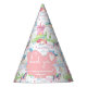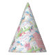 Das Design zeichnet sich durch ein traumhaftes, wasserfarbenes, nahtloses Muster aus, das Einhörner, Schlösser, Regenbögen und Wolken umfasst und eine Fantasieatmosphäre schafft. Im Hintergrund befinden sich zauberhafte rosafarbene Burgen mit Türmchen, Set gegen sanfte grüne Hügel mit Bäumen. Weiche, flauschige Wolken und zarte Blumendetails, wie kleine Blume und Klee, sind im gesamten Design verstreut. Ein pastellfarbener Regenbogen überragt einen Teil der Szene und ergänzt die skurrile, fantasieähnliche Ästhetik. Die Farbpalette besteht aus sanften Pastellfarben, darunter Rosa, Blau, Grün und Gelb, die dem Design ein zauberhaftes Ambiente verleihen.