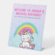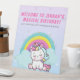 Herzlich willkommen bei diesem funkelnden Unicorn Geburtstagsparty Sign! Mit einem wunderschönen pastellfarbenen Hintergrund, goldenen Sternen und einer einzigartigen Abbildung ist es perfekt für Tische oder Dessertstationen. Personalisieren Sie einfach den Namen und die Altersfelder, um Ihre Einladung und Dankeschön-Karte perfekt zu ergänzen.