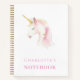 Ein mädchenhaftes Notizbuch für Schule, Journalismus oder Tagebuch. Weiß, mit einem niedlich rosa, wasserfarbenen Einhorn dekoriert. Personalisieren und einen Namen hinzufügen.