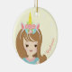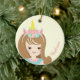 Unicorn Prinzessin Diese skurrile und magische Einhornprinzessin präsentiert ein brünettes kleines Mädchen in ihrem hübschen Geburtstagskleid und ihrem magischen Einhornkopfband. Sie ist bereit für magische Geburtstagsfeiern. Perfektes Design für die Geburtstagsfeier oder Geburtstagsparty der Prinzessin.