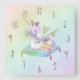 Unicorn Prinzessin Diva Iridescent Rainbow Pastel Quadratische Wanduhr