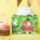 Weihnachtsverpackung mit einem Einhorn, das den Schlitten des Weihnachtsmannes in Richtung eines mit Silberbaummöbeln dekorierten Weihnachtsbaumes zieht. Das Einhorn hat eine rote und goldene Mane und Schwanz, und der Schlitten trägt den Weihnachtsmann mit vielen Geschenken. Der Hintergrund ist ein grüner Glitzer simuliert.