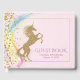 Einhorngeburtstags Gästebuch mit hübschem goldenen Glitzer Einhorn und Herz auf rosa Regenbogenuntergrund. Dieses niedliche Einhorn Gästebuch ist leicht auf Ihre Veranstaltung zugeschnitten, indem Sie einfach den von Ihnen gewünschten Schriftart hinzufügen. Sie können auch die Hintergrundfarbe in diesem bezaubernden Einhorn Geburtstagsgast-Buch ändern. Dies ist ein gedrucktes Design ohne echten Glitzer.