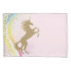 Eingesiegter Kissenkoffer mit hübschem Goldverschluss auf pastellfarbenem Regenbogen und rosa Hintergrund. Dieses niedliche Einhornkissenkoffer lässt sich leicht an den von Ihnen gewünschten Text anpassen. Sie können auch die Hintergrundfarbe ändern. Dies ist ein gedrucktes Design ohne echten Glitzer, Folie, etc.