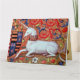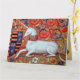 Klassische, elegante Fleur de lys und heraldische Motive, blumenblaue Wirbel, Blume mit weißem Sitzen Einhorn, digitale Dekoration aus einer alten mittelalterlichen Miniatur .