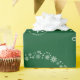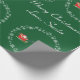 Elegantes und niedliches personalisiertes Weihnachtspapier mit dem Weihnachtsmann in seinem Schlitten, von einem Einhorn gezogen, verschiedene Schneeflocken, und Weihnachtsbäume mit silbernen Bauern dekoriert. Ideal für kleine Kinder, besonders für kleine Mädchen, die gerne Einhörner haben. Mit den individuell gestaltbaren Grüßen "Frohe Weihnachten!" + "Liebe, Weihnachten" in stilvollem kursiven Drehbuch / Kalligrafie. Auf einem grünen Hintergrund von Weihnachten.