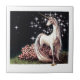 Gegen einen Sternenhimmel, das legendäre, mythologische Einhorn; direkt aus einem mittelalterlichen Bestiar oder einem märchenhaften Geschichtenbuch.