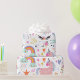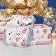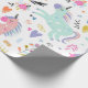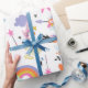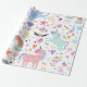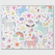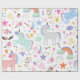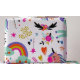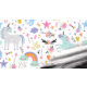 Nahtloses Muster mit Unikornen, Sternen, Herz, Regenbogen, Wolken, Blume, Pfeilen, Kronen und Vögeln auf weißem Hintergrund.