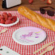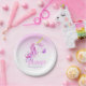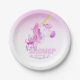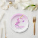 Whimsy unicorn Art rosa Baby Dusche Party Teller. Original Aquarellmalerei und Grafikdesign von Sarah Trett. www.sarahtrett.com für www.mylittleeden.com