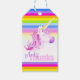 Kennzeichnen Sie Ihre Gastgeschenke und Geschenke in diesem farbenfrohen Regenbogen, der sich in Aquarellkunst verändern lässt. Entspricht einer Reihe anderer einzigartiger Feier- und Geburtstagsprodukte. Original Aquarellmalerei mythische Einhornkunst und Design von Sarah Trett www.sarahtrett.com für www.mylittleeden.com auf zazzle.