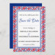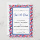 Elegante, moderne und sehr stilvolle Art, eine Ihrer wichtigsten Ankündigungen zu machen. Diese SAVE THE DATE Einladung zeigt die Fahne des VEREINIGTEN KÖNIGREICHS in einem gefliesten Muster. Der Vers der Schrift stammt aus Mark 10:8. Die Rückseite ist ein schlichter, JACK-blauer Hintergrund mit einem subtilen Muster Sprichwort SAVE THE DATE. Passen Sie Ihre Daten auf der Vorderseite an. Ein idealer Weg, Ihren Glauben und Ihre Fahne vor Ihrem Sondertag zu feiern. Teil der Sammlung UK von Berean Designs.
