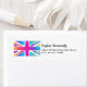 Cool aussehendes Aquarelldesign der britischen Flagge / Gewerkschaft Jack. Die hellen und lebhaften Aquarelle sind in Rosa, lila, Blau, Türkis und Orange gehalten. Die Farben mischen sich und mischen sich zusammen und schaffen weiche Kanten mit einem wolkenähnlichen Effekt. Set auf weißem Hintergrund mit schwarzem Text. Einzigartiges und kreatives Design.