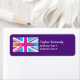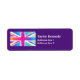 Cool aussehendes Aquarelldesign der britischen Flagge / Gewerkschaft Jack. Die hellen und lebhaften Aquarelle sind in Rosa, lila, Blau, Türkis und Orange gehalten. Die Farben mischen sich und mischen sich zusammen und schaffen weiche Kanten mit einem wolkenähnlichen Effekt. Set auf einem lila Hintergrund mit weißem Text.