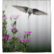 Ein Kolibri nähert sich einer Blume von oben. Ungewöhnliche Perspektive.