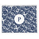 Ein auffallendes marineblaues, blaues Damast-Muster auf einem knalligen, weißen Hintergrund mit feinen Blumenmotiven und eleganten Kurven. Dieses Design strahlt Eleganz und zeitlosen Charme aus.