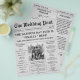 The front page features your wedding headline, ceremony details, and a custom photo, while the back page shares your story, wedding timeline, and bridal party list — all wrapped in a charming vintage newspaper layout.
