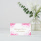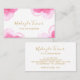 This unique business card features a botanical design of light and airy pink watercolor florals paired with stylish gold script typography.