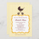 Eine elegante und moderne Babydusche für eine schicke Mutter. Auf dem gelben Streifen-Hintergrund befindet sich ein dunkelbrauner Stift und ein verzierter Rahmen für den Text.