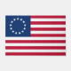 Dieser Artikel enthält die Betsy Ross Fahne, die eine frühe Gestaltung der Nationalflagge der Vereinigten Staaten war. Es ist nach einem frühen Polsterer und Flaggenmacher benannt, von dem behauptet wird, dass er es zuerst erschaffen hat. Das Muster der Betsy Ross Fahne besteht aus 13 abwechselnden rot-weißen Streifen mit Sternen in einem blauen Feld im oberen links EckKanton. Sein Merkmal ist, dass dreizehn 5-Punkte-Sterne in einem Kreis angeordnet sind, der die 13 Kolonien darstellt, die während des Amerikanischen Unabhängigkeitskrieges für ihre Unabhängigkeit kämpften. Seit Anfang des 20. Jahrhunderts ist die Fahne ein beliebtes Symbol des amerikanischen Patriotismus.