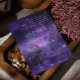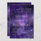 Lila Weltraumstars Einladung mit modernem Drehbuch für romantische Nachthochzeiten.