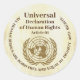 Diese runden Aufkleber haben einen rustikal braunen Hintergrund und sind Teil von Artikel 01 der Universellen Erklärung der Menschenrechte der Vereinten Nationen: Alle Menschen sind frei und gleich in Würde und Rechten. Dieses aus 30 Artikeln bestehende Dokument verankert die Rechte und Freiheiten aller Menschen. Es wurde am 10. Dezember 1948 genehmigt, nachdem 48 der 58 Nationen dafür gestimmt hatten (acht enthielten sich der Stimme und zwei versagte, abzustimmen oder sich der Stimme zu enthalten).