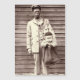 Vintages Foto eines Postmanns mit Baby in Mailbag. Dieser Briefträger aus der Stadt stellte sich für ein humorvolles Foto mit einem jungen Jungen in seiner Mailtasche. Nach der Einführung des Paketpostdienstes im Jahr 1913 wurden mindestens zwei Kinder vom Dienst geschickt. Mit Briefmarke an der Kleidung fuhren die Kinder mit Eisenbahn- und Stadtführern zu ihrem Ziel. Der Generalpostmeister hat nach Anhörung dieser Beispiele schnell eine Regelung erlassen, die das Versenden von Kindern in die E-Mail verbietet. Danach wurde ein mit einem Kind gefüllter Postbeutel in einem humorvollen Foto dargestellt, um das Verbot zu veranschaulichen __________________________________________________ Das ursprüngliche Foto ist Die Höflichkeit : Nationales Postmuseum - es wurde von Alma Wad bearbeitet und auf dieser Magnetkarte angewendet.