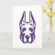Dieses Design ist ein nahes up der University at Albany Great Dane Maskottchkopf. Die Illustration verwendet fett lila Konturen mit detaillierter Schattierung in Grau für das Gesicht des Großen Dänen, die seine Winkelzüge hervorheben. Die Augen sind scharf, und der Ausdruck vermittelt Wachsamkeit und Stärke. Goldakzente erscheinen auf beiden Seiten des Kiefers des Hundes, was dem ansonsten erbitterten Aussehen eine Touch Wärme verleiht. Die Ohren sind aufrecht und spitz, was das Gefühl der Bereitschaft und Autorität des Logos verstärkt. Das Design ist minimalistisch und dennoch leistungsstark, ideal für die Markendarstellung der sportlichen Identität von UBAlbany.