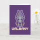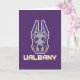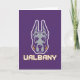 Das Maskottlogo der Universität Albany Great Dane zeigt eine stilisierte Darstellung des Kopfes eines großen Dänen. Der Hund ist illustriert mit scharfen, kühnen Linien in lila und grau, was ihm einen erbitterten, selbstbewussten Ausdruck verleiht. Die Ohren stehen hoch und symbolisieren Aufmerksamkeit und Stärke. Unter dem Kopf der Großen Däne steht das Wort "UBAlbany", geschrieben in fett gedruckten, blockigen goldenen Briefen, die lila umrissen wurden, was das Markenzeichen der Universität verstärkt. Dieses Design repräsentiert die Sportteams von UAlbany und unterstreicht Power, Loyalität und Entschlossenheit.