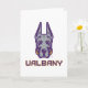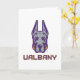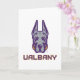 Das Maskottlogo der Universität Albany Great Dane zeigt eine stilisierte Darstellung des Kopfes eines großen Dänen. Der Hund ist illustriert mit scharfen, kühnen Linien in lila und grau, was ihm einen erbitterten, selbstbewussten Ausdruck verleiht. Die Ohren stehen hoch und symbolisieren Aufmerksamkeit und Stärke. Unter dem Kopf der Großen Däne steht das Wort "UBAlbany", geschrieben in fett gedruckten, blockigen goldenen Briefen, die lila umrissen wurden, was das Markenzeichen der Universität verstärkt. Dieses Design repräsentiert die Sportteams von UAlbany und unterstreicht Power, Loyalität und Entschlossenheit.