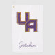 Das Logo der Universität Albany zeichnet sich durch ein gewagtes und dynamisches "UA"-Design aus, das in der lila Unterschrift der Universität dargestellt und mit einer auffallenden Goldgrenze umrissen wurde. Die eckigen, blockartigen Buchstaben verleihen dem Logo ein starkes und autoritäres Erscheinungsbild, perfekt für den Schulstolz und die Identität. Die symmetrische und geometrische Struktur der Buchstaben vermittelt eine moderne und berufliche Ästhetik.