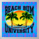 Beach Bum University, Mann entspannen in einer Hängematte zwischen zwei Palmen genießen den Sonnenuntergang über dem Ozean. Rosa Hintergrundfarbe der Hawaiianischen Honu Schildkröten und Tiki Masken.