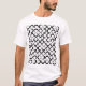 Ein abstraktes geometrisches Design aus schwarz-weißen Flecken mit hohem Kontrast, das auf willkürliche Weise ausgerichtet ist.