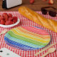 Unsaubere Regenbogenstreifen Pappteller