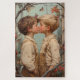 Eine herzliche und zarte Szene, die zwei junge Jungen zeigt, die einen unschuldigen Kuss inmitten eines Apfelzweiges und flatternder Schmetterlinge teilen. Dieses Kunstwerk in einem Stil, der an Norman Rockwell und J.C. Leyendecker erinnert, strahlt Charme und Nostalgie aus und feiert die Reinheit und Schönheit der Kindheit.