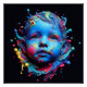 Ein Porträt eines jungen Jungen im abstrakten Stil. Set vor dunklem Hintergrund harmonieren die himmelblauen Farbtöne nahtlos mit den lebendigen Farbspritzen und schaffen so einen faszinierenden 3D-Effekt. Das Kunstwerk erfasst die Unschuld der Ausdrücke des Kindes, umgeben von einer Welt farbenfroher Fantasie.