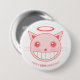 Illustration der niedlichen unschuldigen Katze auf Rosa mit boshaftem Lächeln, Engelshalo und Text - "ich schaue nur unschuldig"