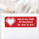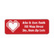 Ein kirschrotes Adressetikett ist mit einem weißen 8-Bit-Herz auf dem links und Beispieltext auf der rechten Seite dekoriert, um es individuell zu gestalten. Verwenden Sie diese Etiketten auf der Außenseite Ihrer Einladungen oder "Dankeschön"-Karten für eine elegante Touch, besonders wenn sie mit den anderen 8-Bit Herts in Cherry-Karten kombiniert werden, oder tauschen Sie die Standard-Adressetiketten aus, um die RSVP-Karten für Ihre Gäste vorzuadressieren.