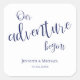 Unser Abenteuer beginnt dk Blue Typografy Hochzeit Quadratischer Aufkleber